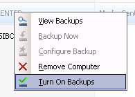 To resolve that, just turn on your the backups for this machine (WHS Server Console => Computers & Backups => Right click the machine => “Turn on backup”):